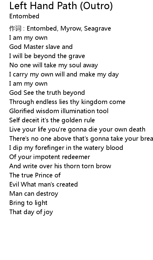 | 歌曲 | Left Hand Path (Outro) |