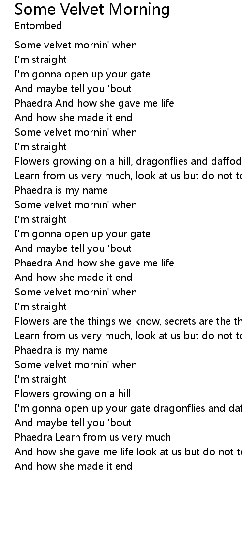 Some velvet mornin' when |