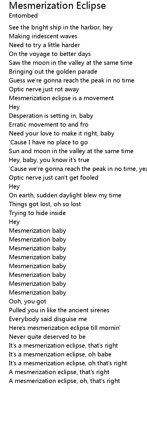 A mesmerization eclipse, that's right |