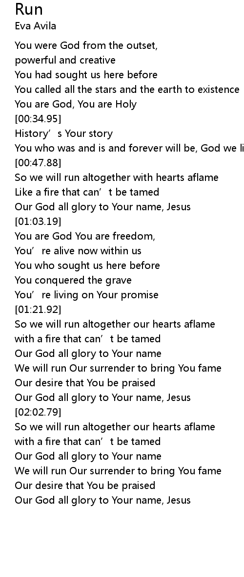 | [01:22.68] | So we will run altogether our hearts aflame |