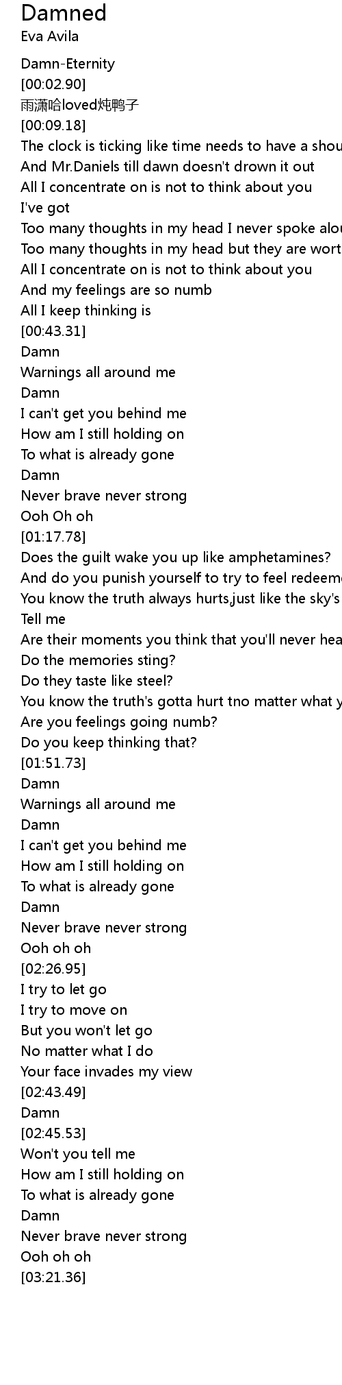 | [00:27.97] | Too many thoughts in my head but they are worthless now |