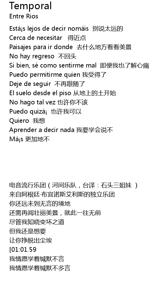 | [00:11.03] | 来自阿根廷·布宜诺斯艾利斯的独立乐团 |