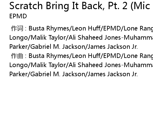 | 歌曲 | Scratch Bring It Back, Pt. 2 (Mic Doc) |
