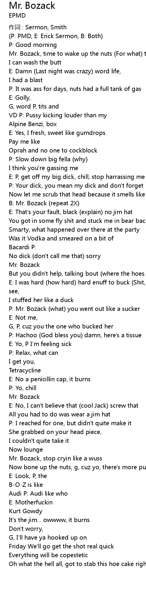 | 歌曲 | Mr. Bozack |