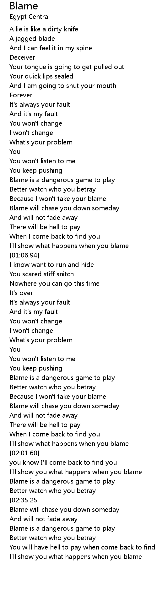Blame will chase you down someday |