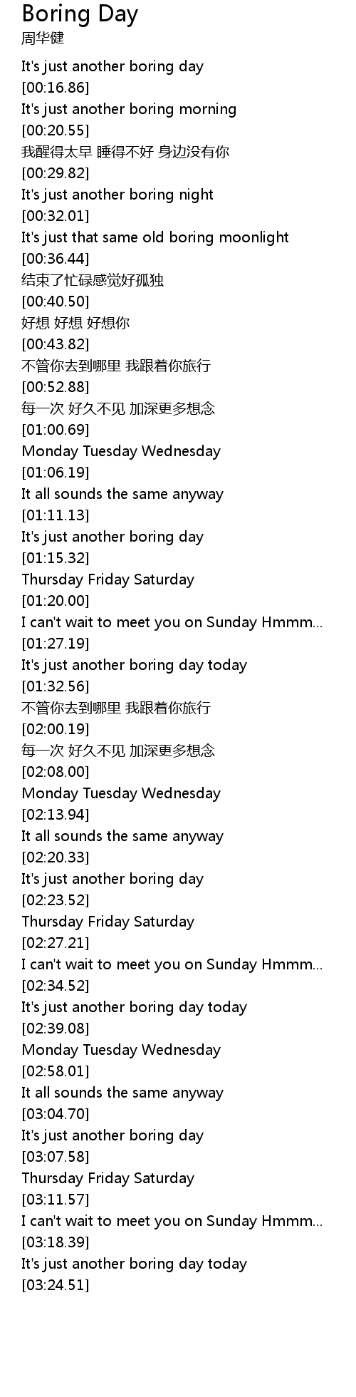 | [02:36.71] | It's just another boring day today |