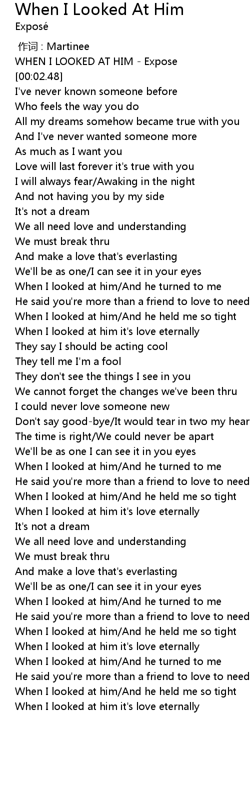 | [00:01.13] | WHEN I LOOKED AT HIM - Expose |