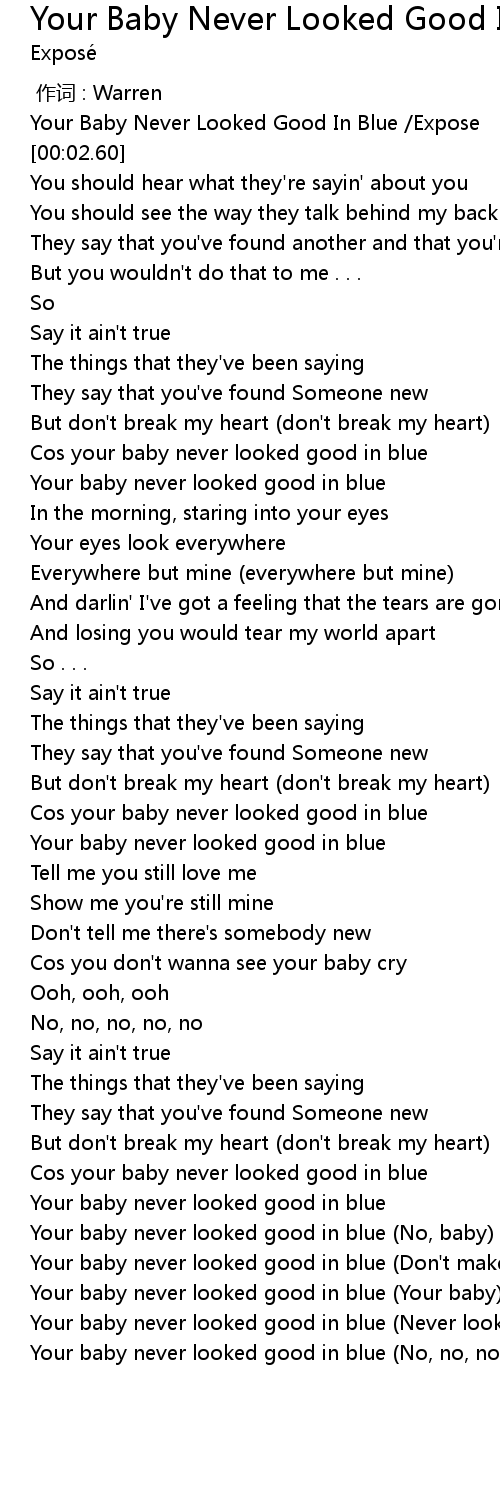 | [00:01.37] | Your Baby Never Looked Good In Blue /Expose |