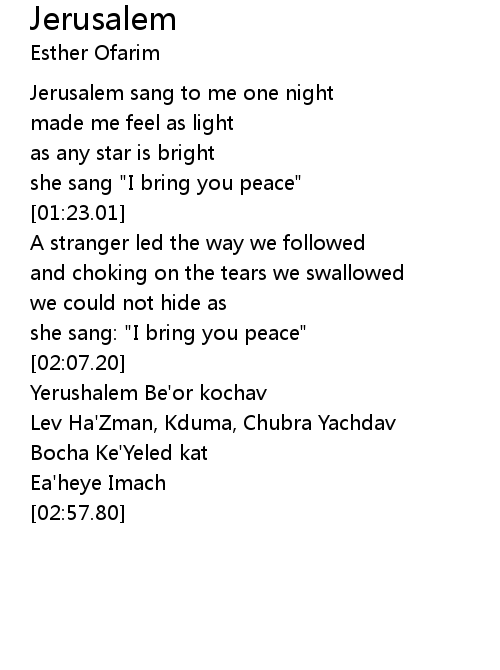| [02:24.12] | Yerushalem Be'or kochav |