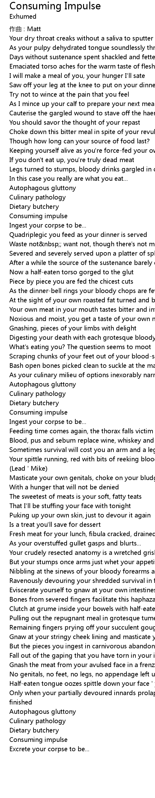 | 歌曲 | Consuming Impulse |