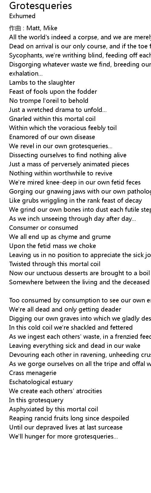 | We gag on the feast of our grotesqueries... [Lead - Mike] | |