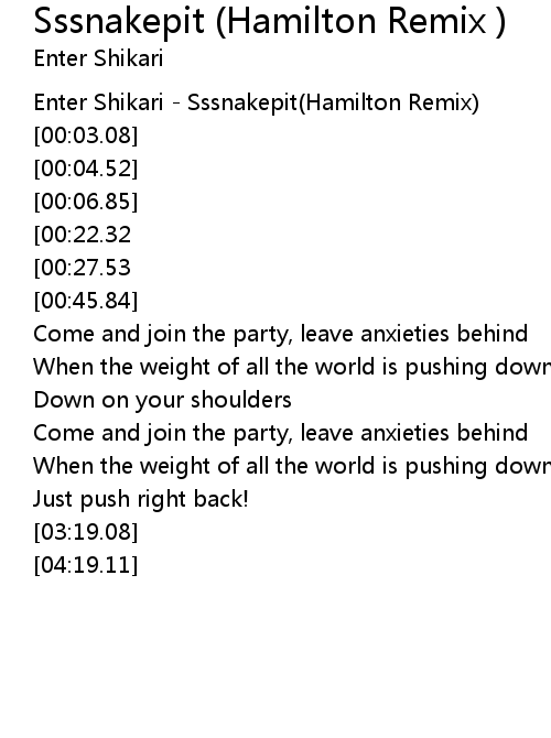 Enter Shikari - Sssnakepit(Hamilton Remix) |