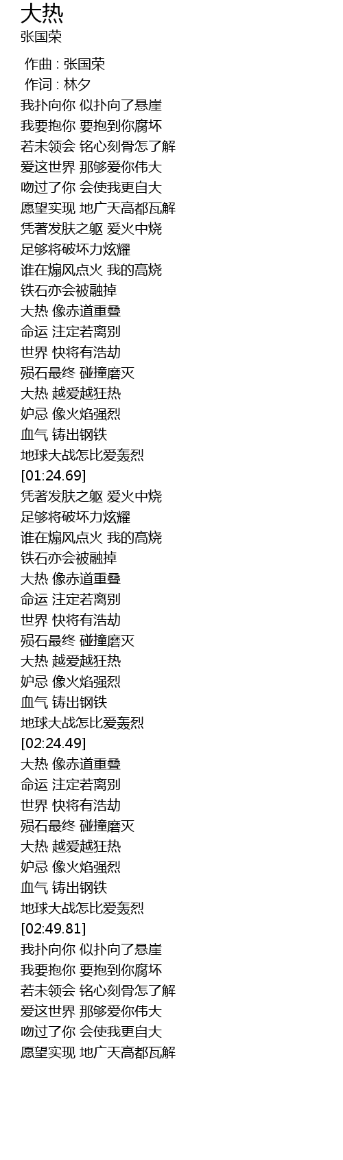 | [02:11.70] | dà rè yuè ài yuè kuáng rè |