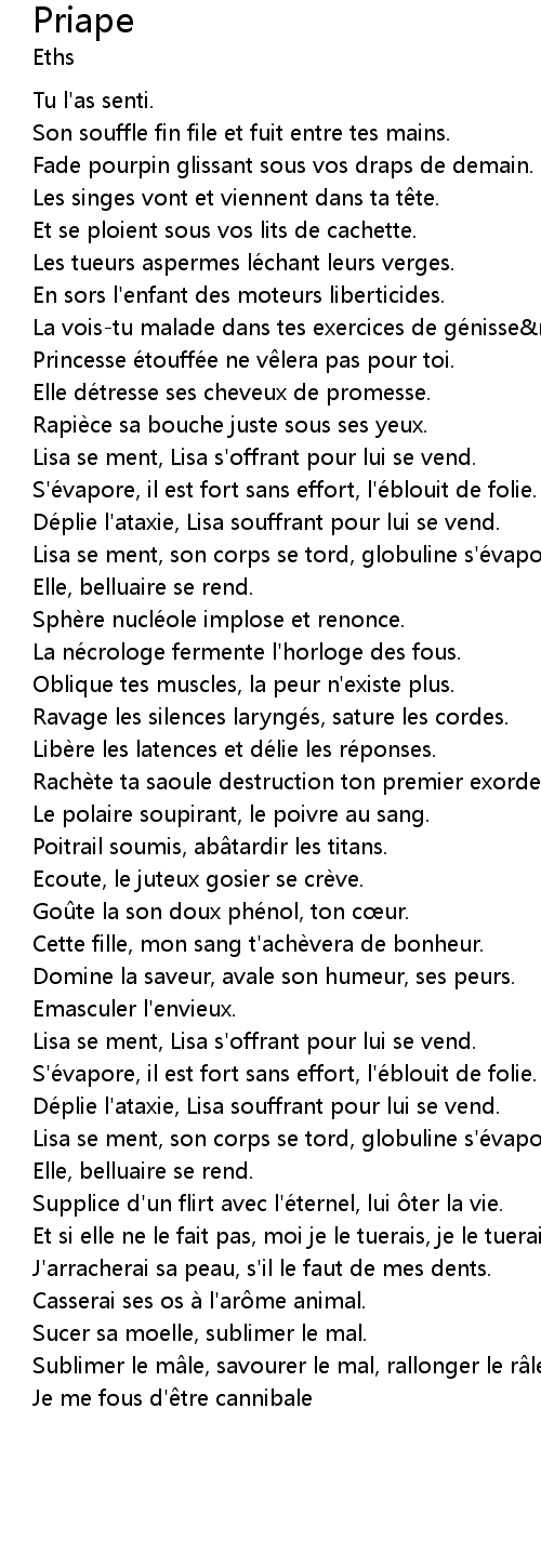 | Ravage les silences larynge s, sature les cordes. | |
