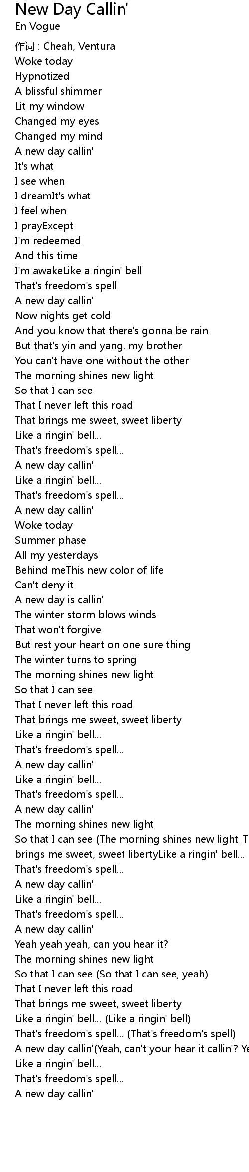| A new day callin' Yeah, can' t your hear it callin'? Yeah yeah... | |